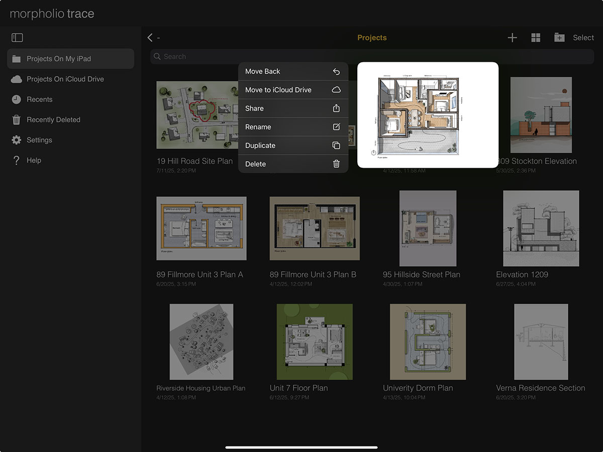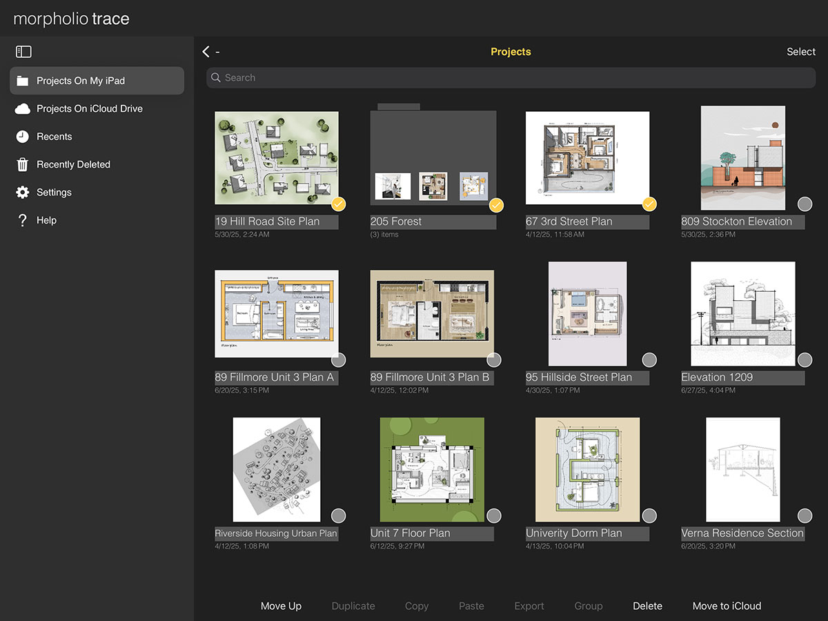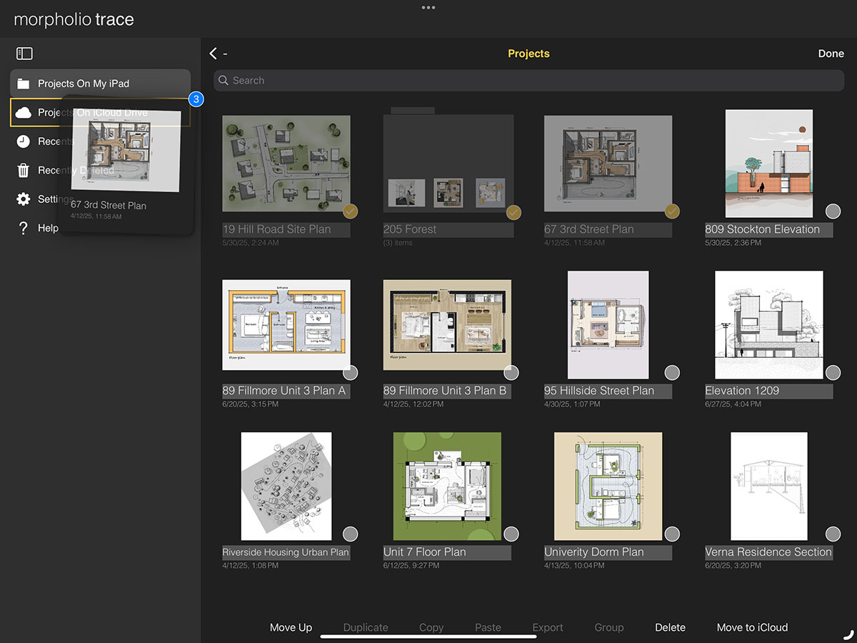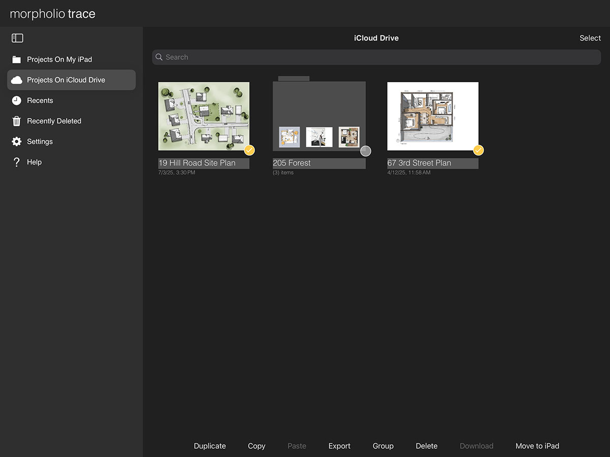 iCloud Drive makes it easy to protect your work and access your projects across all your personal devices. By enabling iCloud Drive, you can back up and sync your projects seamlessly. Simply turn on iCloud Drive in your Trace settings, then move your files into the "Projects on iCloud Drive" folder within the app. Any project in this folder will be available on all iOS devices signed in with the same Apple ID and with iCloud enabled.